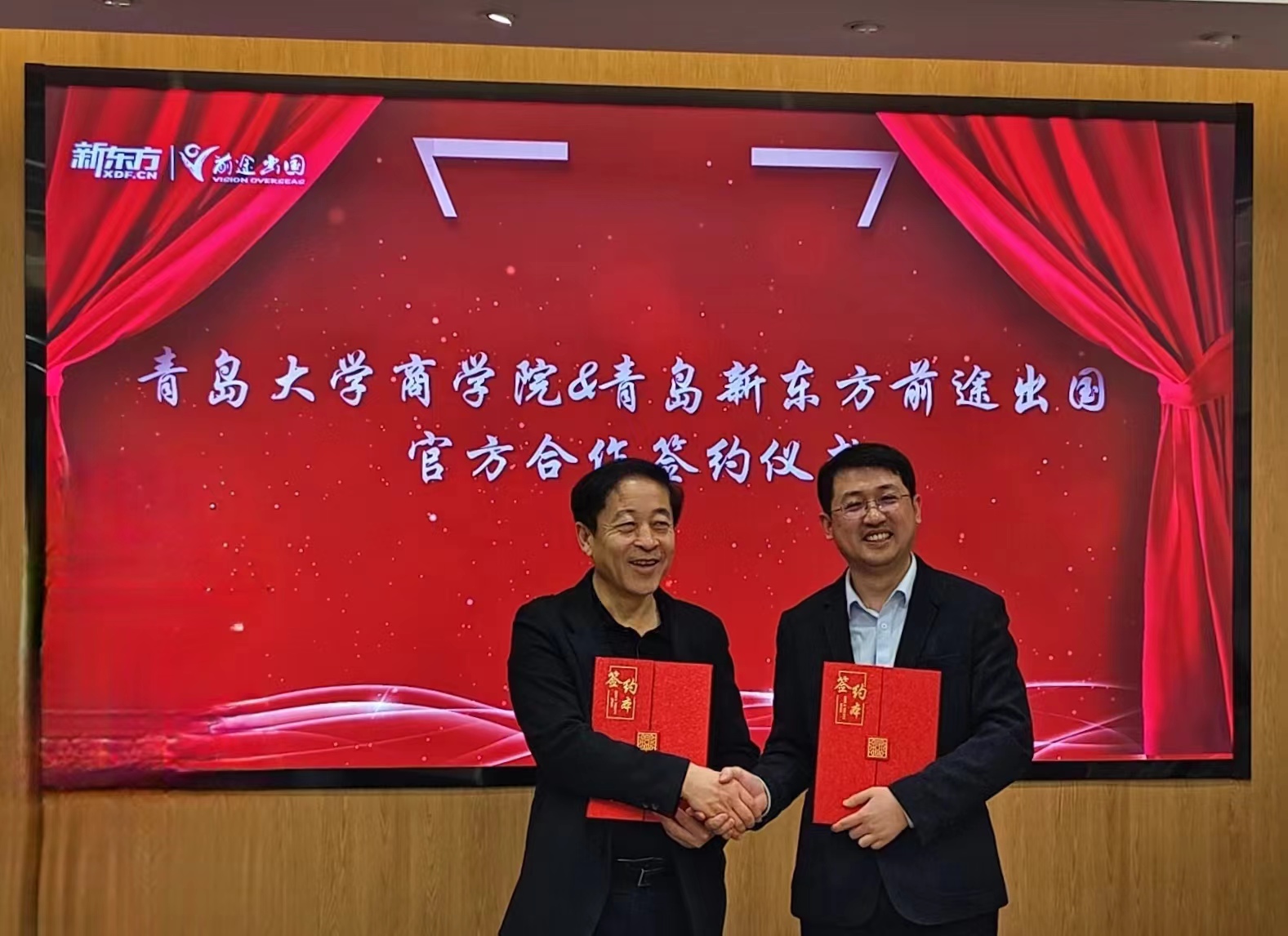 2024年3月23日上午,BB贝博艾弗森官方网站与青岛新东方前途出国咨询有限公司签署合作共建协议暨教学实践基地挂牌仪式活动在新东方前途出国会议室举行。青岛新东方前途出国总经理孙桂岩、总助刘和平、BB贝博艾弗森官方网站党委书记王功勇、党委副书记尼梅颉、学工办主任李鹏等出席挂牌仪式。