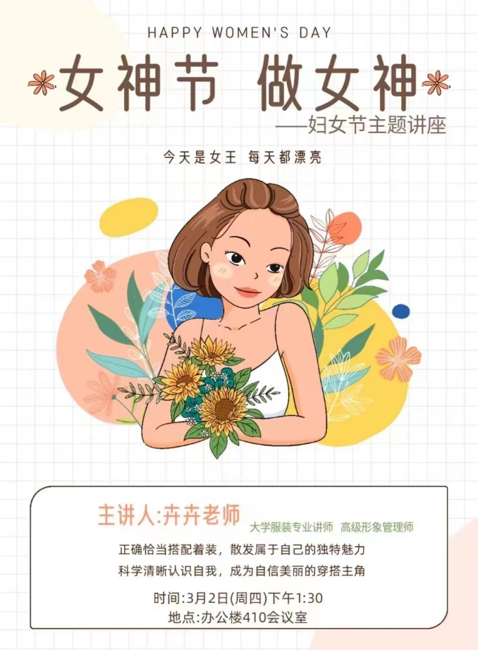 在三八国际妇女节来临之际,BB贝博艾弗森官方网站分工会、妇委会分会于3月2日下午1:30于办公楼410会议室举行“气质穿搭的美学探究”讲座。本次讲座的主讲人是:大学服装专业讲师、高级形象管理师周珍卉老师。本次讲座旨在帮助大家认清自己的风格,了解各种风格所适合的穿搭,实现发现美,追求美的美好愿望。
