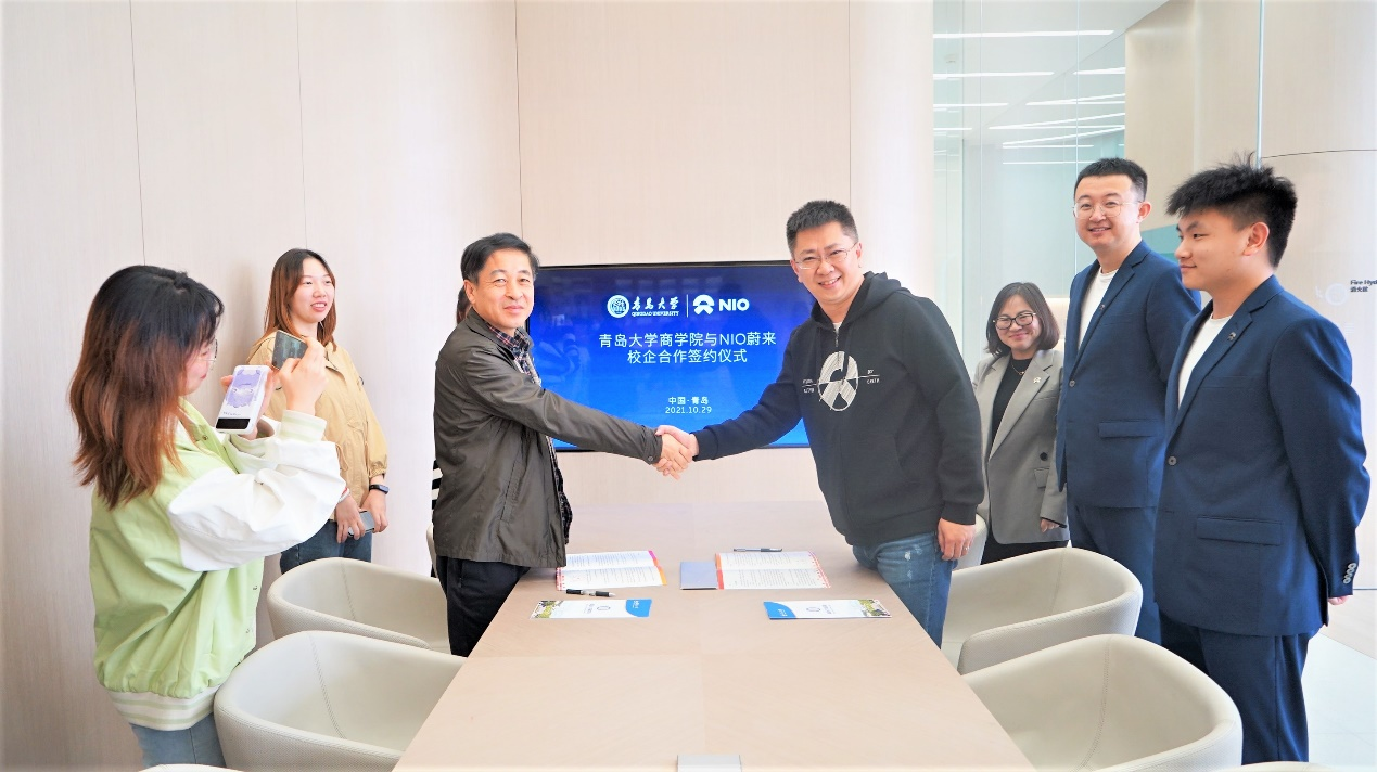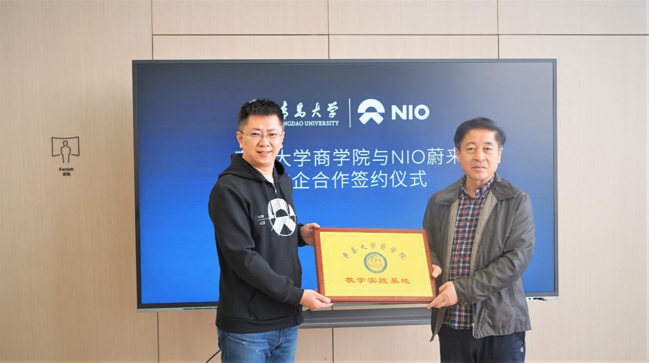 10月29日下午,BB贝博艾弗森官方网站与NIO蔚来签署合作共建协议暨教学实践基地挂牌仪式在NIO蔚来中心举行。NIO蔚来代表青岛区域总经理李轶石、销售负责人邢高峰、蔚来中心负责人吴迪、海天中心蔚来顾问团队负责人丁琪、人力资源负责人韩璐、青岛公司HRRP杜少龙、BB贝博艾弗森官方网站党委书记王功勇、BB贝博艾弗森官方网站党委副书记于文、党政办主任宋畅、校友办主任李鹏、市场学系辅导员刘一方、会计学系辅导员张天姿、校友协会、就业协会、毕业生代表出席挂牌仪式。