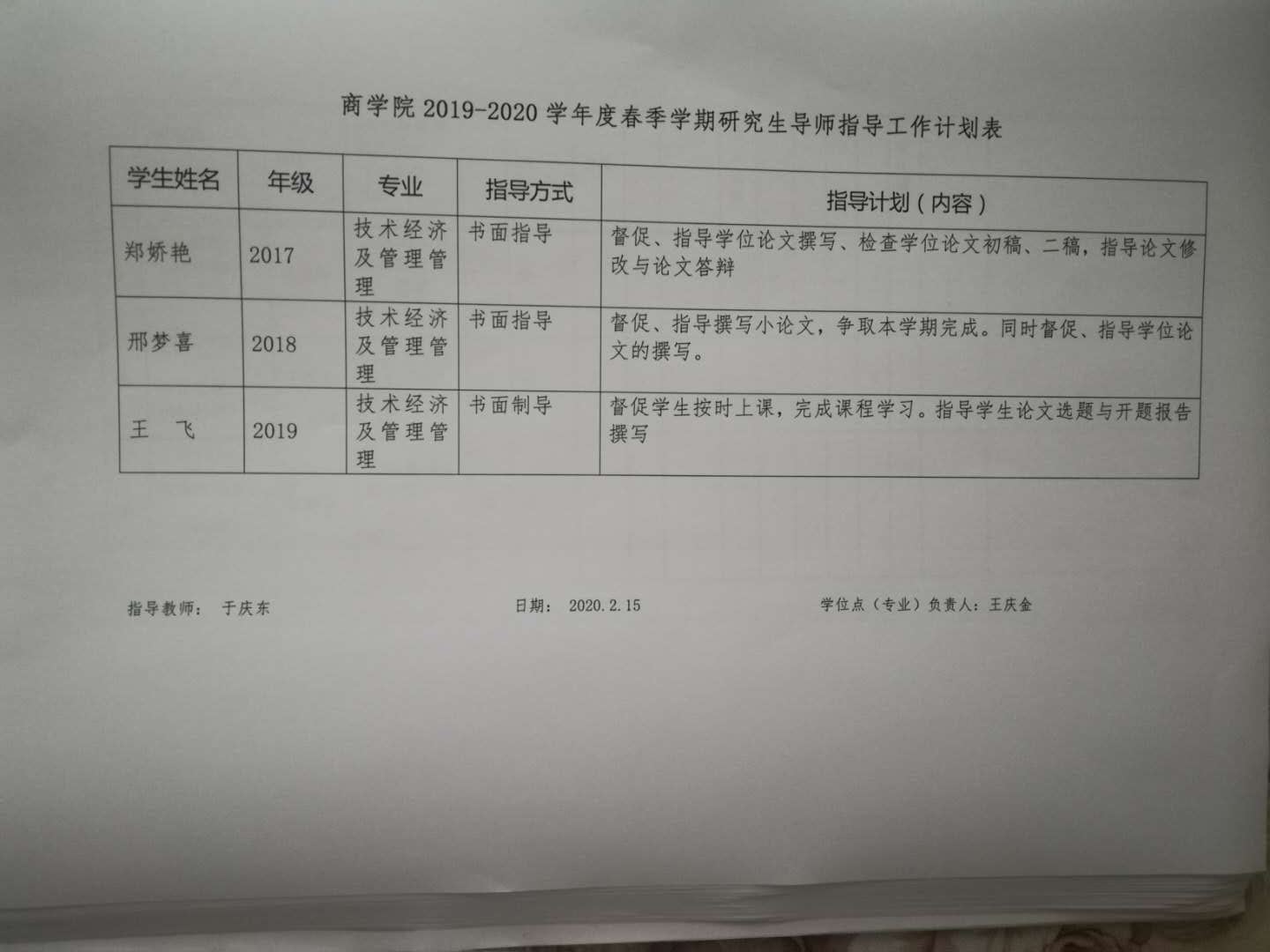 学生指导方面。要求各专业及导师及时掌握学生详细情况,随时关注学生学业进度、科研情况、思想动态、健康情况和生活实际,以线上、移动端等多元形式对学生提供科研指导、给予关心帮助、做到精准施策。全部77位导师制定了具体的指导工作计划(包括指导方式、内容、时间等),报各系(专业)、学院备案。同时督促学生密切联系导师,接受指导。
