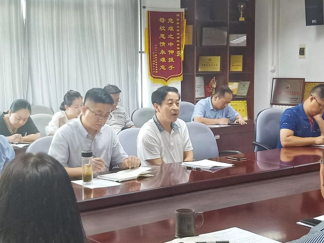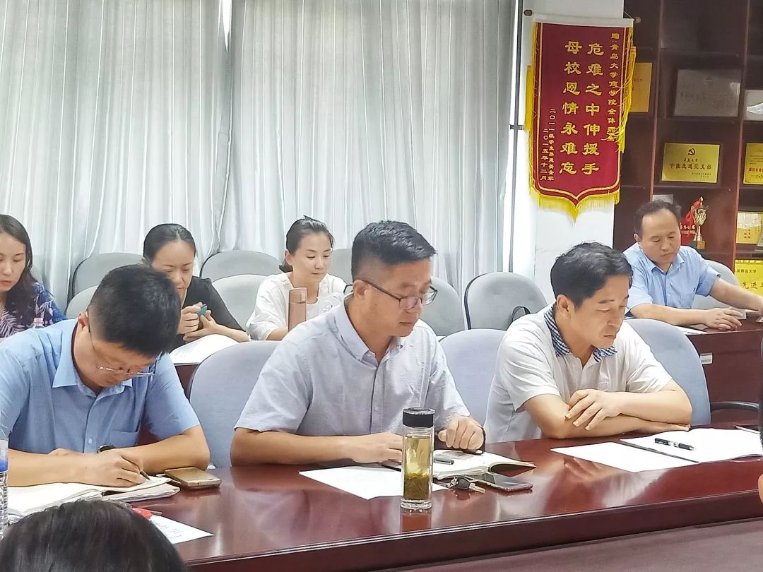 首先,王功勇书记传达学校2019年学校暑期中层干部学习研讨班会议精神。王功勇书记传达了党委全委会议上胡金焱书记总结的《更高标准 更大担当 以改革创新精神奋力开创学校事业高质量发展新局面》和党委全委会议上夏东伟校长强调的统一思想、凝聚力量的思想内容。