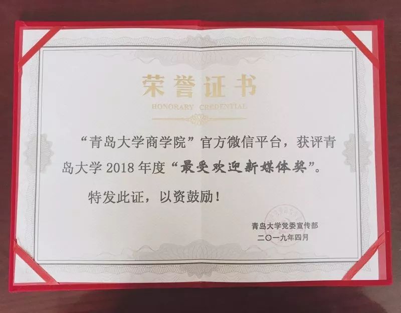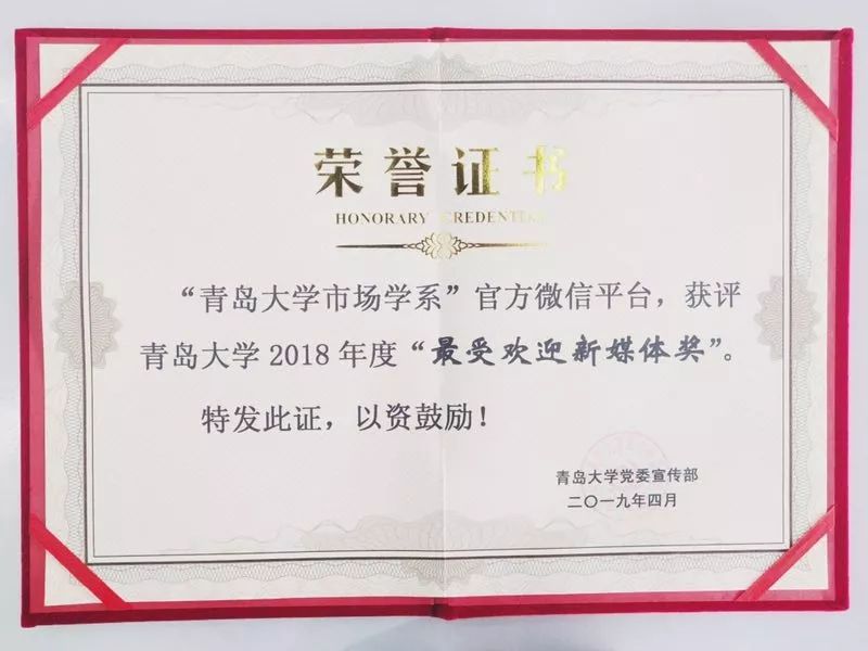 2018年度校内“最受欢迎新媒体奖”称号
