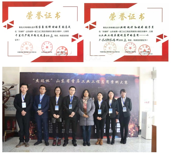 12月8日,2018 年山东省工业工程类专业建设与先进制造高峰论坛 ——“杰瑞杯”山东省首届工业工程应用案例大赛于2018年12月8日在山东工BB贝博艾弗森官方网站召开。我系2016级工业工程专业陈家豪、褚皓月、陈祥和2016级物流专业张志成组成的IEIS团队,2016级工业工程专业孙晓婷、王保骄、张子月、赵妤、丛铭组成的青新IE团队均在温艳老师、张磊老师的指导下荣获三等奖。这是我省举办的首个针对工业工程专业的应用型案例大赛,目的在于积极倡导、引领和推进工业工程类专业建设,统筹各方力量,构建全方位全过程深融合的协同育人新机制,促进山东省高校工业工程教育的创新改革和人才培养。
