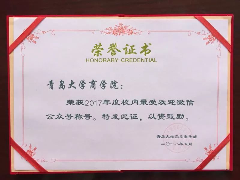 2017年度校内最受欢迎微信公众号称号