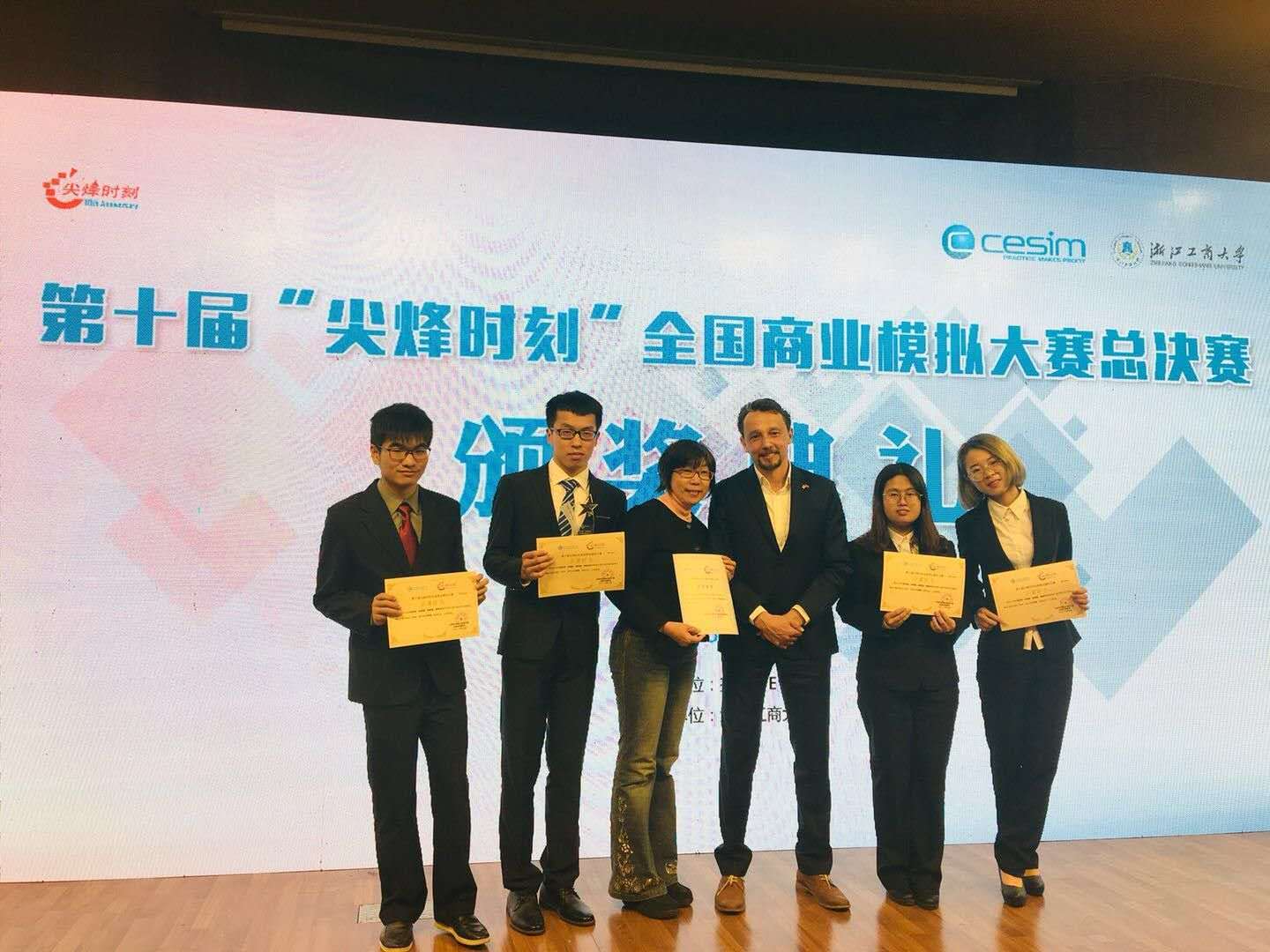 3月23日,由“尖烽时刻”中国区组委会主办,浙江工商大学承办的第十届“尖烽时刻”全国商业模拟大赛总决赛在杭州拉开帷幕。经过自2017年10月起初赛、复赛层层角逐,来自清华大学、中国人民大学、南开大学、中山大学等诸多国内高校的共 23 支本科生队伍和 18 支 MBA / 研究生队伍晋级决赛,角逐赴欧洲参加全球总决赛的入场券。历经两天的激烈角逐,BB贝博艾弗森官方网站管科系邢筠老师指导的“秋名山车队”获“第十届尖烽时刻全国商业模拟大赛决赛(本科生组)”二等奖。