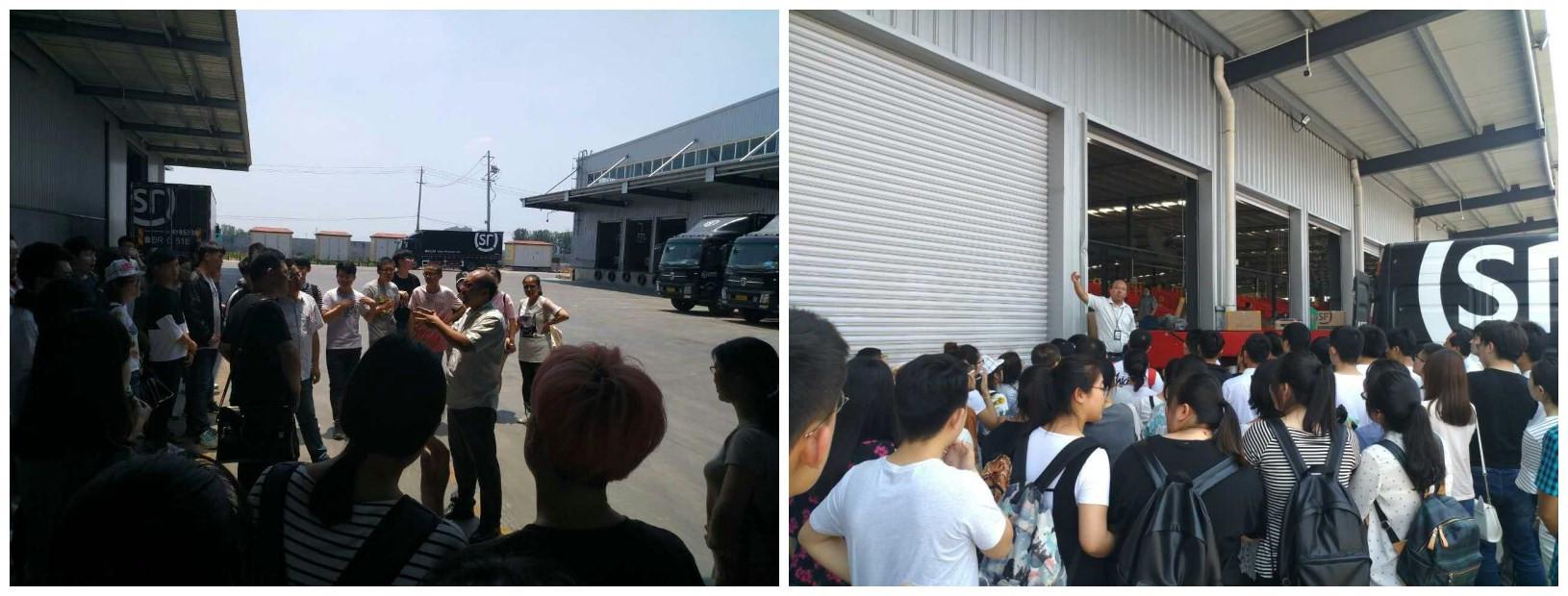 本次社会活动的第2站是位于即墨南泉的华骏物流园区顺丰分拣中心,周主任首先带领大家依次参观了顺丰分拣中心的分拣区、卸货区和仓储区,了解了顺丰的包裹分拣流程、人员车辆调动方法以及装卸过程中特有的装卸设备和装卸系统。周主任还向大家详细介绍了顺丰在分拣、调配和装卸等方面未来的发展方向和创新想法,以及顺丰对人才的培养计划。随后,分管小米仓储中心的赵经理向大家介绍了顺丰和企业的合作模式,并与同学们就企业间的合作模式进行了互动问答。