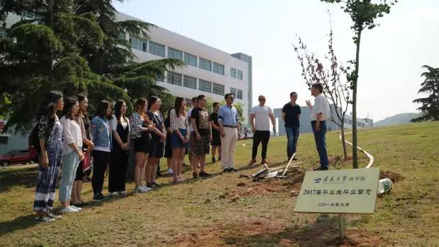 活动伊始,由全体毕业生将毕业纪念铜牌埋到地下,全体师生共同种植纪念树。种植结束后,由2017届毕业生代表曾玉莹同学发表讲话。曾玉莹同学表达了对学校和老师悉心栽培教导的感激之情,并表示将不忘初心,时刻铭记身为一名中国共产党员的使命,以党员的标准要求自己,不辜负老师的期望,为母校增光添彩。并向学校、商院及老师送出了深切祝福。