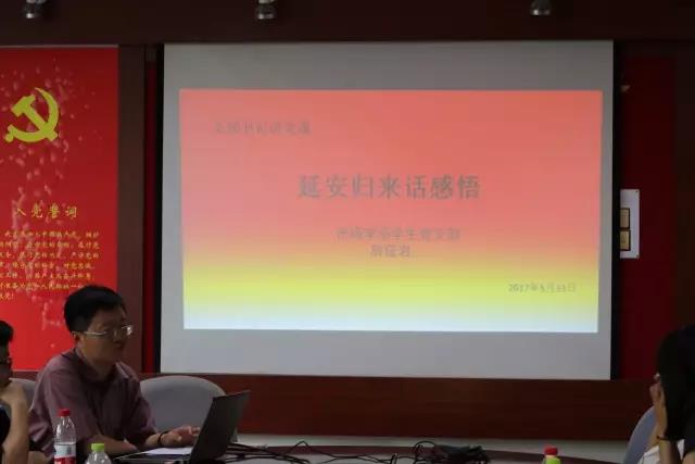 全体党员集体学习了全省高校思想政治工作会议精神,李小娜、王海波、张再等党员围绕如何贯彻和践行会议精神、如何提高党员理论学习能力、党员在毕业阶段表率作用发挥等进行了座谈交流;党支部书记房征岩结合自己到延安学习经历为全体党员做了“延安归来话感悟”的专题党课,与大家分享了延安精神的深刻内涵和共产党人的责任使命。