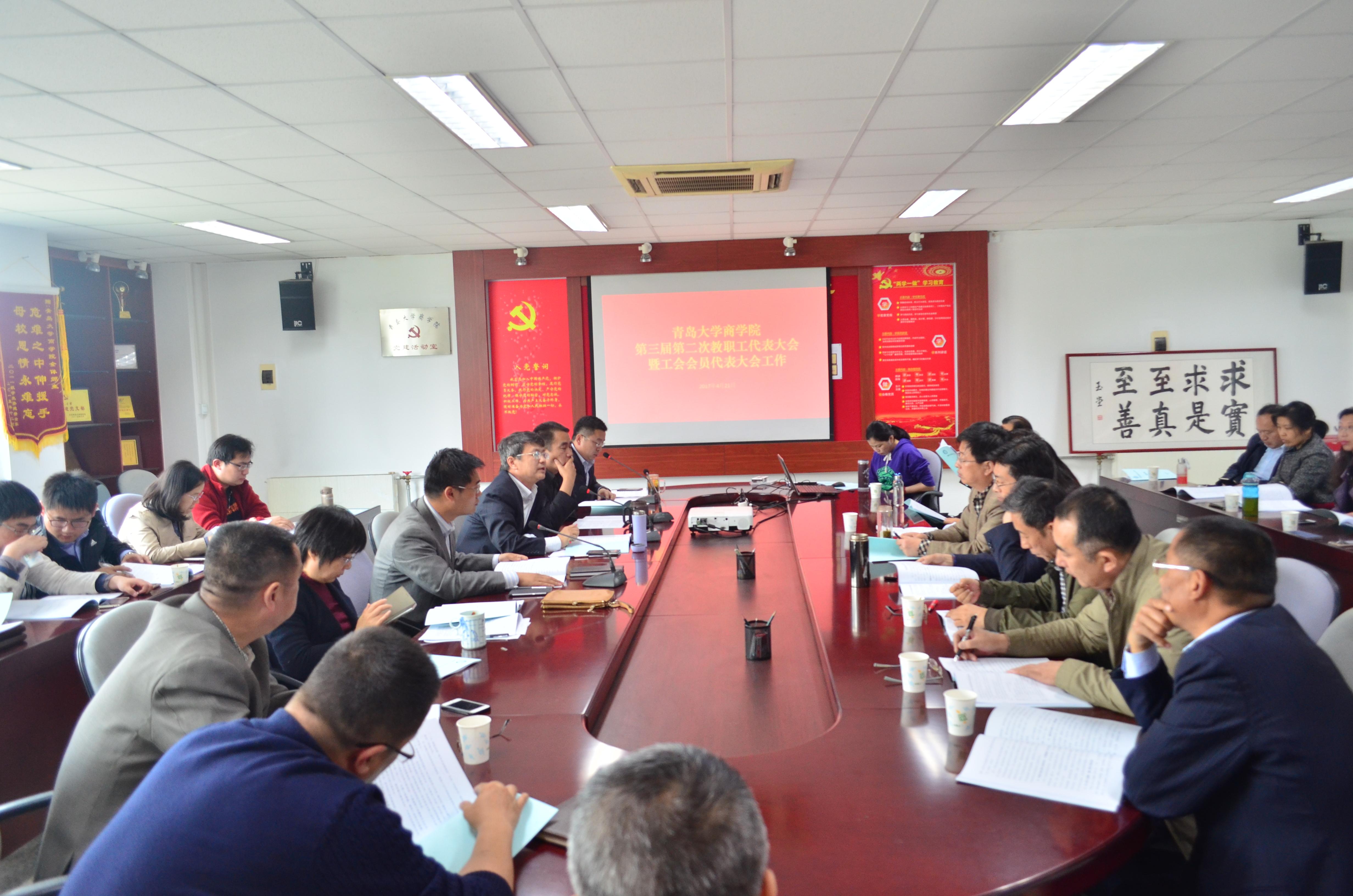 2017年4月21日下午2:00,BB贝博艾弗森官方网站工会委员会在金家岭校区西院办公楼310室召开BB贝博艾弗森官方网站三届二次“双代会”,来自学院各部门、各教学系、中心的60名代表参加了会议。
