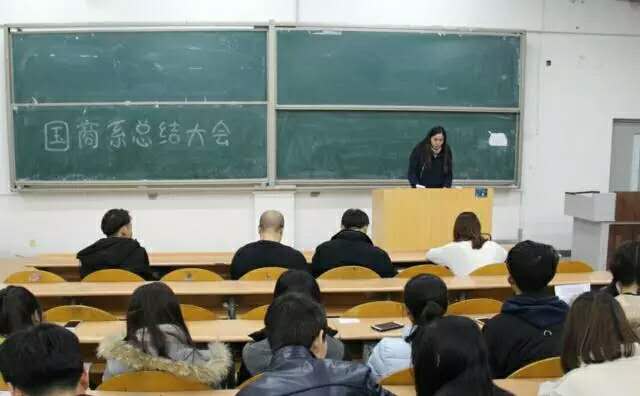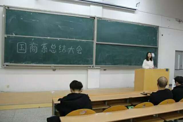 20161218日下午4:30,国商系学生会总结大会在1111举办。团总支书记王国栋老师、学生党支部书记姜雪峰老师出席,国商系学生会主席团及各部部长、副部长到场。大会由副秘书长刘嘉琪主持。