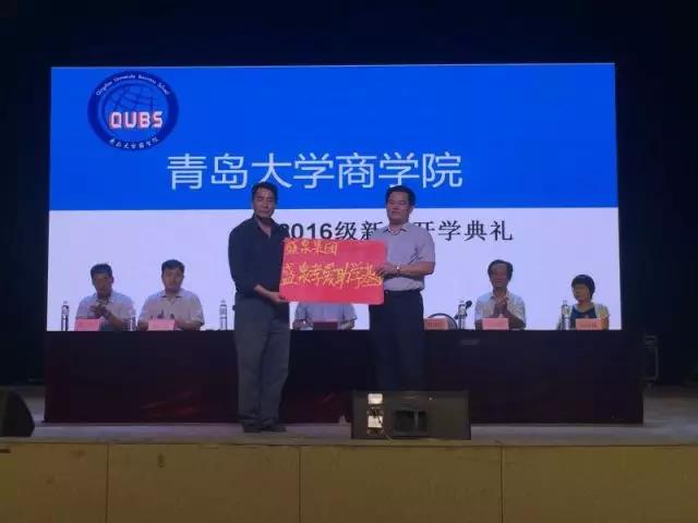 BB贝博艾弗森官方网站院长胡劲松向2016级新同学的到来表示了热烈的欢迎,向新生们详细的介绍了BB贝博艾弗森官方网站的办学历史、师资力量和发展愿景。96级校友、市南区联通公司总经理邓龙和校企共建单位威海盛泉集团董事长邱龑模分别致辞。胡劲松向邱龑模颁发创新创业导师聘书,盛泉集团向BB贝博艾弗森官方网站捐助“盛泉孝爱助学基金”并赠送祝福学子成长成才的匾额。