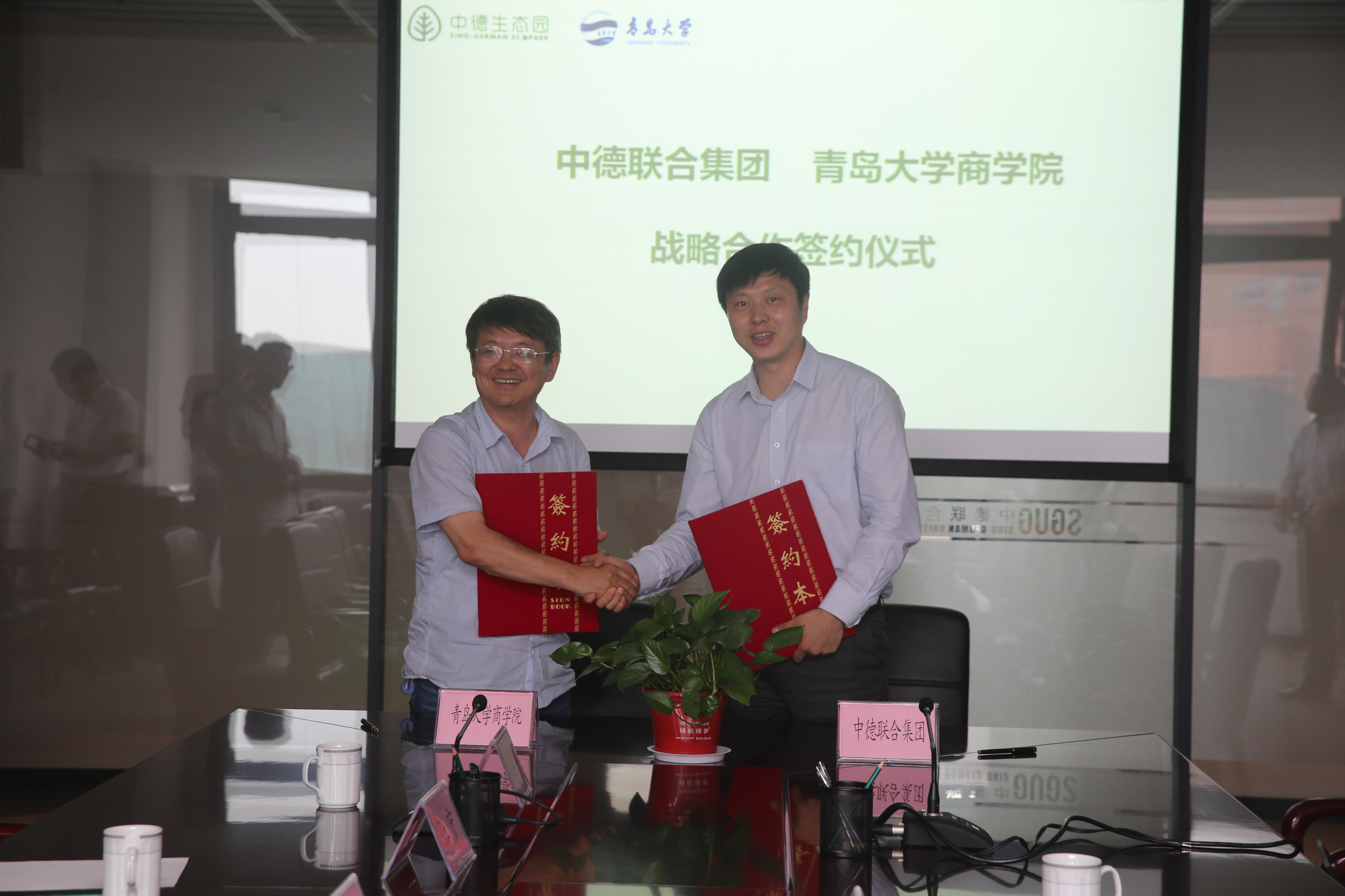 BB贝博艾弗森官方网站与中德联合集团举行战略合作签约仪式。青大BB贝博艾弗森官方网站96级校友、中德联合集团董事长汪舵与BB贝博艾弗森官方网站党委书记管永建共同签署合作协议并为教学实践基地揭牌。管永建和汪舵各自介绍了学院、公司的具体情况、发展历程,管永建希望BB贝博艾弗森官方网站能够和中德联合集团共同建立中德合作中心,真正的将企业与学院的优秀资源整合,为学校、学院、学生的发展提供最大的支持与帮助。汪舵董事长表示,作为青大商院人,愿意尽自己最大的努力为母校的发展尽自己一份绵薄之力。签约仪式结束,代表团参观了中德生态园区,中德生态园体验运营中心,了解生态园的概念规划、城市规划、指标体系。