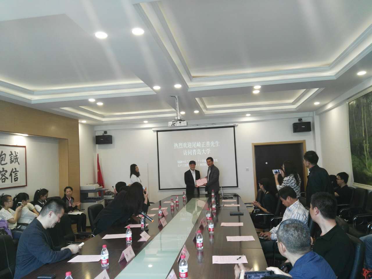 尾崎正善在办公楼410会议室为师生做了主题为“国际动漫产业现状”的报告。他畅谈了自己对于“日本与美国动漫的区别”、“中国动漫发展的瓶颈”、“动漫发展的商业化和艺术化”和“动漫创作如何融入高校教学体质”等问题的见解。他认为,美系动漫以电影为基础,而日本的动漫从漫画中演变而来,贴近自然和生活,中国动漫的发展不仅需要同时吸收美国和日本动漫的优点,还需要年轻人的热情和冲劲。同时他还说,中国动漫应该理清思路,认清发展道路是商业化还是艺术化,中国大学可以借鉴日本大学里动漫专业的经验,在学习过程中学会思考和创作同样重要。他还提到了日本曾经也遇到过当前中国动漫的发展瓶颈,要坚持下去,形成自己的产业链,他希望可以与IUIA合作创造出更加优秀的动画。报告后进行的交流环节,听众提出的多个问题,尾崎正善均给与了坦诚解答。