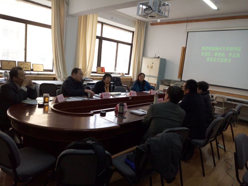 2015年11月25日,扬州大学孙茂庆老师、缪艳娟老师、李志斌老师莅临我系进行交流学习,会计学系主任范英杰教授代表会计系负责具体的接待工作并向孙茂庆老师一行就BB贝博艾弗森官方网站及会计学系的基本情况进行了全面细致的介绍。