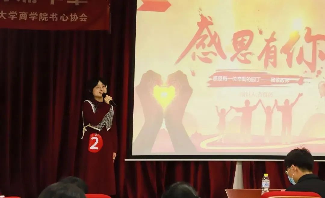黄茵茵为大家带来作品《粉笔私语》。透过她的朗诵,我们仿佛看到了无数位“执一支粉笔,站三尺讲台,四季坚守,育千万桃李”的人民教师,也感受到了一名学子对老师深深的感激之情。