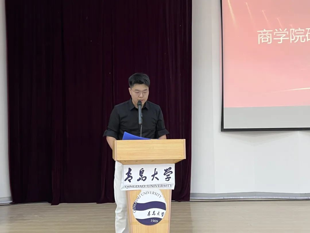 新生代表蓝添强调了研究生阶段面临的学业挑战与更高的要求,呼吁同学们要勤奋学习、积极参与学术活动,提升实践能力,同时重视个人品德的修养,树立正确的价值观和责任感。并且激励大家铭记学院和老师的期望,以优异成绩回报社会,共同描绘美好的未来蓝图。
