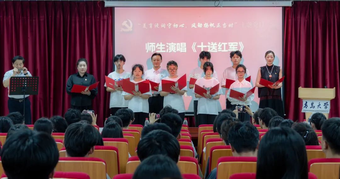 王功勇书记口琴伴奏,辅导员和学生代表现场演唱《十送红军》,追忆艰苦卓绝的历史,激励新时代青年传承革命精神、赓续红色血脉,做好时代答卷人。