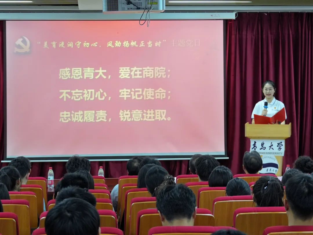 毕业生党员代表陈佳欣同志分享了大学四年的成长,表达了对校院及支部的感恩与不舍之情。倡议毕业生党员站好最后一班岗,文明离校;同时,代表全体毕业生党员庄严承诺:铭记党员身份,不忘初心,牢记使命,忠诚履责,锐意进取,不负伟大时代的期许。