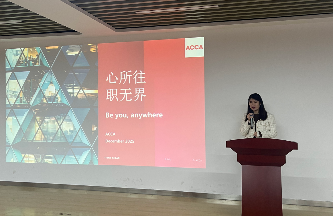 闫卫华带来了满满的专业干货分享,从三大维度为同学们解析ACCA的核心价值。她详细介绍了ACCA专业资格从学员到准会员、会员的完整成长路径,强调学习ACCA不仅能收获全球广受认可的专业资格,更能构建一套对抗职业不确定性的能力体系。她还解读了ACCA的发展历程、国内人才政策、国央企等认可雇主资源、中国企业人才培养方向班合作模式、以及与海外高校的学位衔接通道。此外,她还向同学们推荐了“ACCA 职业理想路”学习工具,介绍了协会开放的企业参访、实习就业机会支持、会员专属活动等优质资源,帮助同学们清晰规划职业方向,告别“盲盒式”求职。
