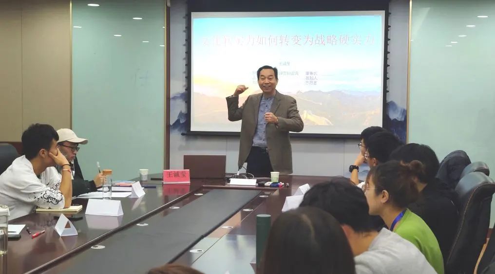 王老师将软实力与硬实力进行了对比,剖析了文化软实力与战略硬实力的辩证性关系,指出“文化是心的体现,战略是事的杠杆”。