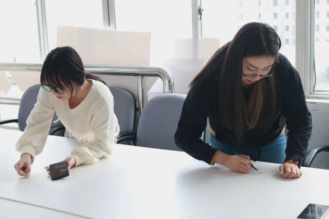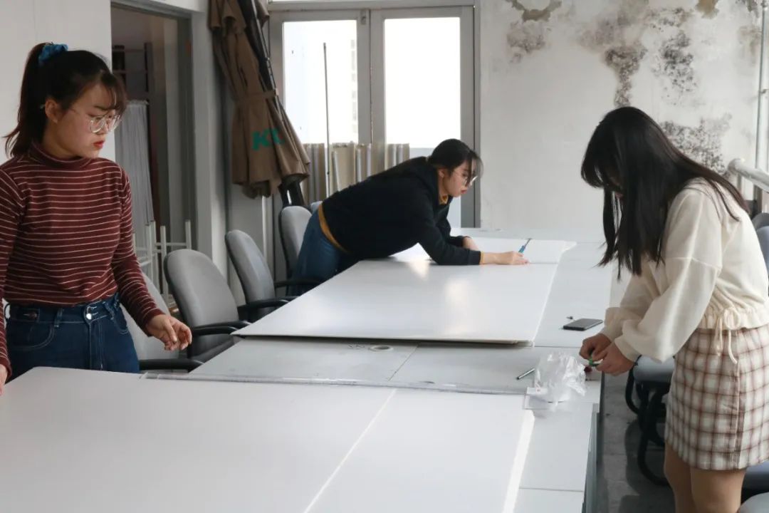 3.晚上九点半到十一点半,学生会成员们分别在图文中心、篮球场和四号楼到六号楼的沿路集合,将事先贴在画稿上的双面胶撕掉,贴上色彩斑斓的荧光棒,在贴荧光棒的过程中,同学们都积极参与,纷纷为鼓励学长学姐考研贡献自己的力量。