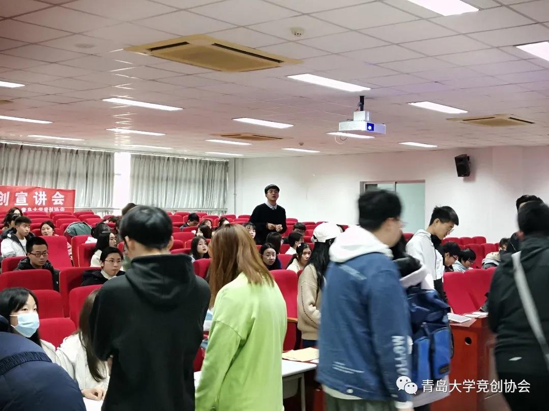 “三创赛”校赛负责人王显芳学姐在会上详细介绍了电子商务,包括时间安排、报名方式、组队方式、评分规则等流程和注意事项,对赛事进行了全方位的解读。