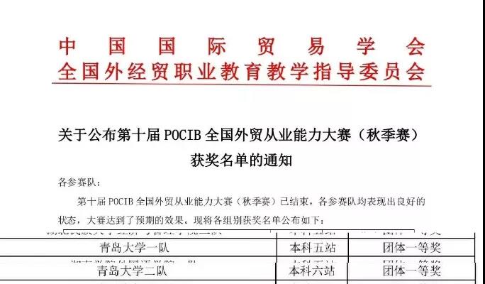 3、以培养“双卓越”人才为目标,加强对于学生创新创业教育和竞赛相关工作的开展。2020年我院共组织50余支团队参加了各类创新创业大赛,2020年大学生大创项目3项获国家级立项,8项获省级立项;“青大海宴杯”第六届中国国际“互联网+”大学生创新创业大赛校赛2支队伍获银奖,5支队伍获铜奖;1个项目入驻2020年秋季学期创业孵化基地;举办了第十三届娃哈哈营销大赛,共有约20支队伍报名参赛;学生参加学校“大学生创新创业大赛”“创青春”、“挑战杯”、“互联网+”等比赛百余人次;在2020年全国高校商业精英挑战赛会计与商业管理案例竞赛中获3个一等奖和4个二等奖;BB贝博艾弗森官方网站国际商务系二十位同学组成的两个团队在第十届POCIB全国外贸从业能力大赛中荣获两项团体国家一等奖,1项个人国家一等奖、5项个人国家二等奖、9项个人国家三等奖。