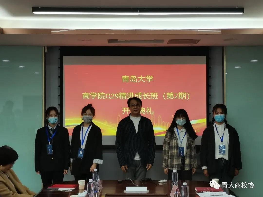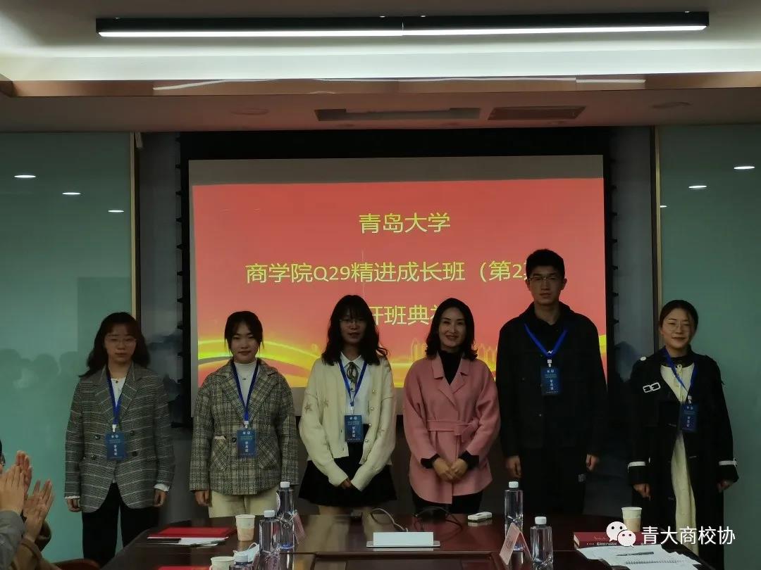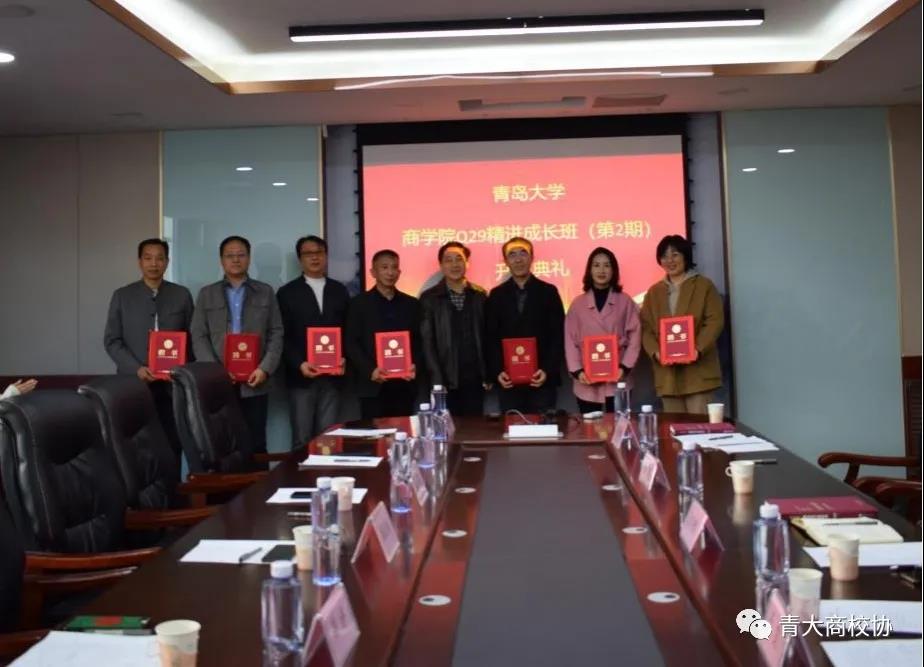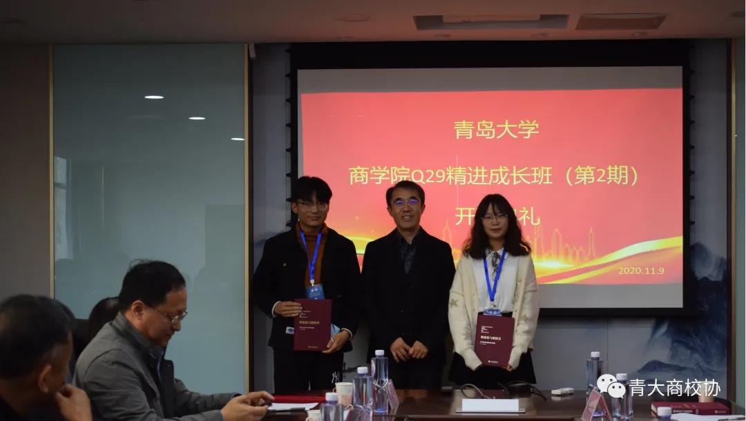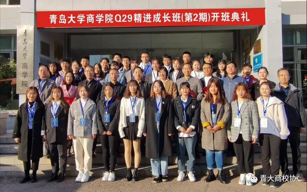 BB贝博艾弗森官方网站Q29班成员代表——青大校友会副会长修方舟,青岛怡坤物流有限公司董事长崔强,全国房地产企业家与经理人联合会副秘书长、青岛众绘爱心慈善基金会理事(暖基金发起人)高评,青岛百安贸服装有限公司董事总经理李勇,青岛智诚灵动品牌营销有限公司董事长王诚莹出席仪式,青岛同威资本管理有限公司副总经理任丽华、青岛嘉木国际文化教育中心董事长谈睿等应邀出席。BB贝博艾弗森官方网站党委书记王功勇、BB贝博艾弗森官方网站党委副书记于文、BB贝博艾弗森官方网站院长助理张波、BB贝博艾弗森官方网站校友办主任李鹏、Q29精进成长班班主任赵业婷、Q29精进班全体学员参加了本次典礼。