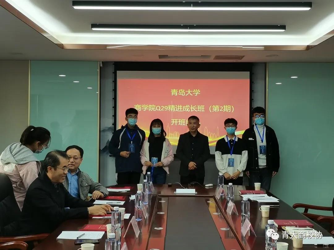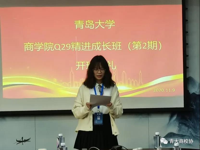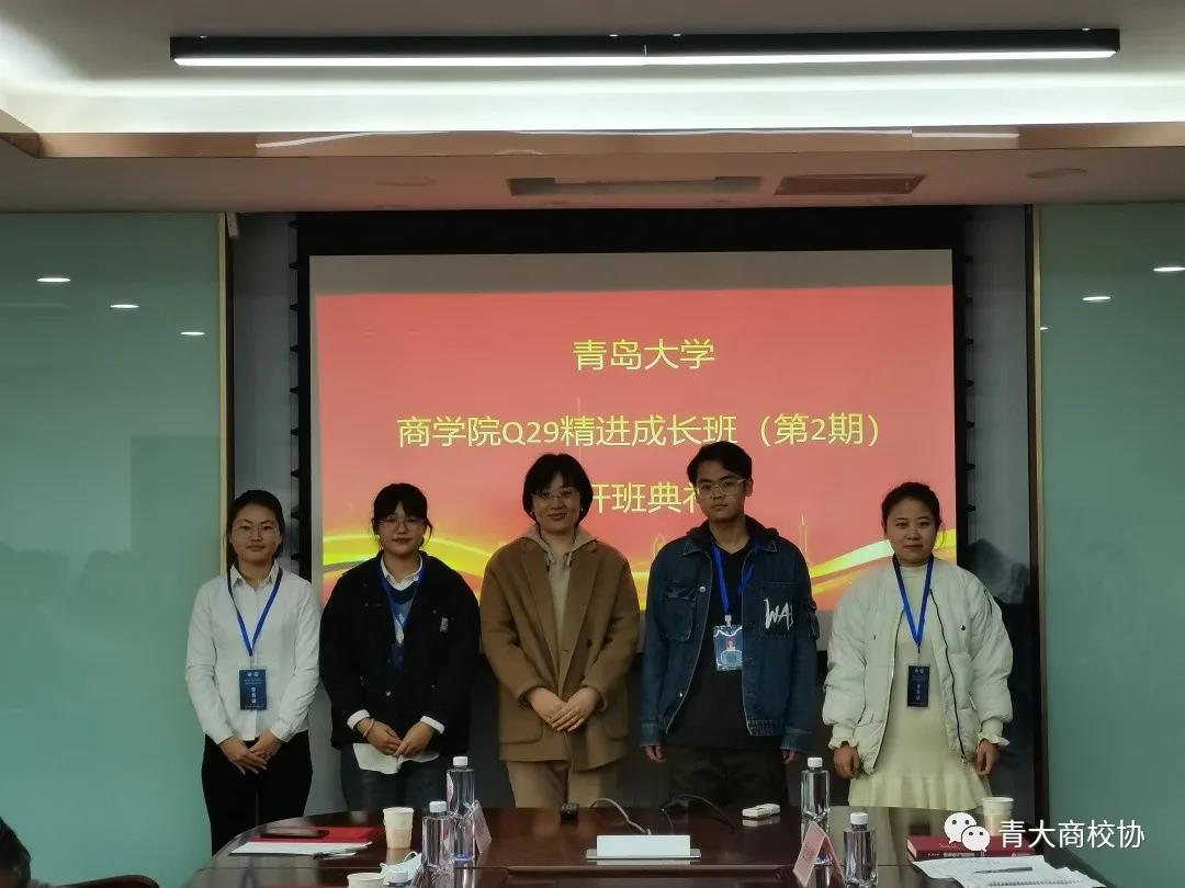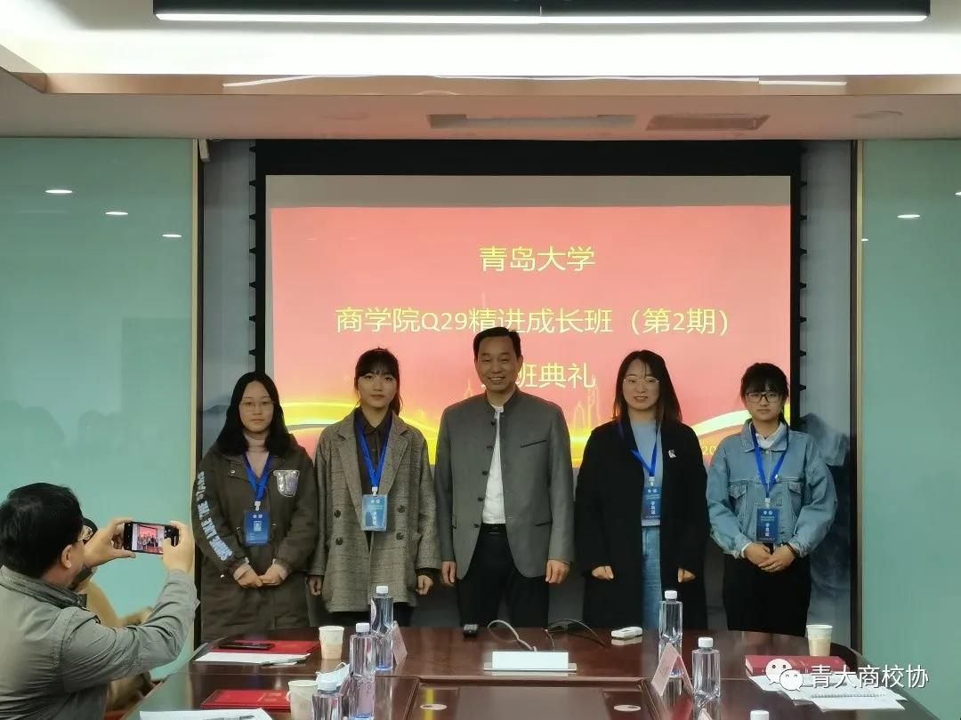 BB贝博艾弗森官方网站Q29班成员代表——青大校友会副会长修方舟,青岛怡坤物流有限公司董事长崔强,全国房地产企业家与经理人联合会副秘书长、青岛众绘爱心慈善基金会理事(暖基金发起人)高评,青岛百安贸服装有限公司董事总经理李勇,青岛智诚灵动品牌营销有限公司董事长王诚莹出席仪式,青岛同威资本管理有限公司副总经理任丽华、青岛嘉木国际文化教育中心董事长谈睿等应邀出席。BB贝博艾弗森官方网站党委书记王功勇、BB贝博艾弗森官方网站党委副书记于文、BB贝博艾弗森官方网站院长助理张波、BB贝博艾弗森官方网站校友办主任李鹏、Q29精进成长班班主任赵业婷、Q29精进班全体学员参加了本次典礼。