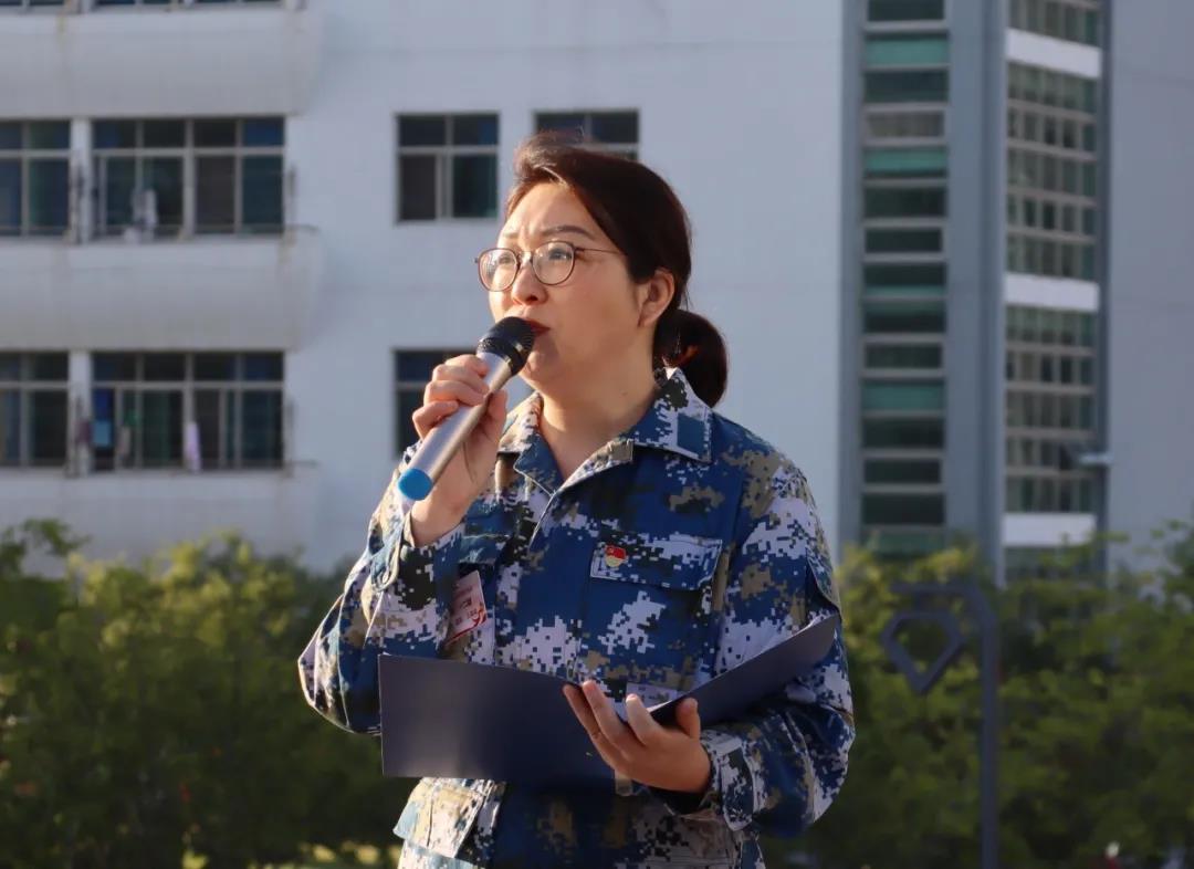 BB贝博艾弗森官方网站学生军训第四临时党支部书记王海荣老师为大家做国旗下讲话