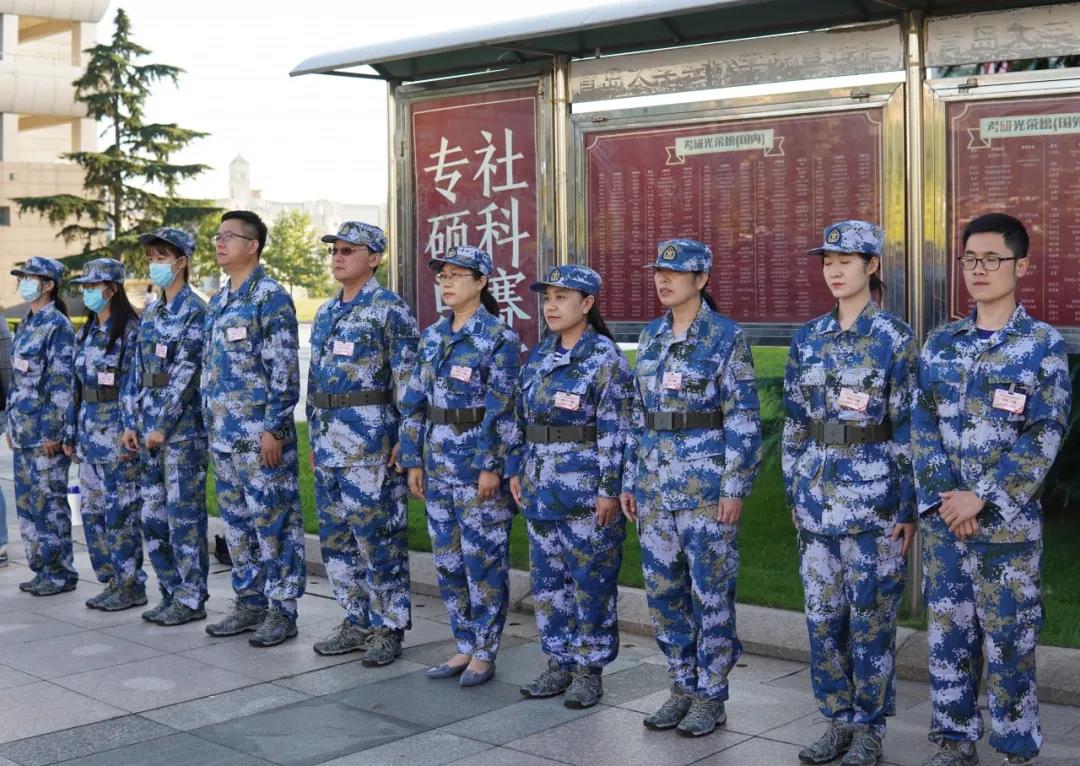 (军训工作第四临时党支部所有成员与国旗班队员合影)