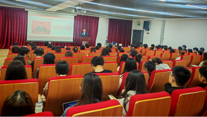 为深入学习贯彻党的二十届三中全会精神,引导青年学生坚定理想信念,切实肩负起新时代青年学生历史使命和时代责任,BB贝博艾弗森官方网站青年大讲堂暨2024年秋季学期党课培训于2024年10月25日晚在金家岭校区图文中心三楼报告厅举行。BB贝博艾弗森官方网站党委书记王庆金授课《学习贯彻党的二十届三中全会精神》,BB贝博艾弗森官方网站学生第三党支部书记陈鑫主持本次培训,BB贝博艾弗森官方网站各学生党支部本学期确定的党员发展对象和入党积极分子共计130余人同上一堂课。