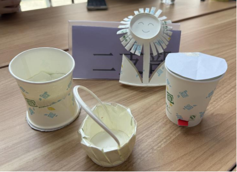 在旧物改造环节,各组抽取快递箱、旧纸盒等闲置物品,集思广益创意灵感,将其改造成创意桌面垃圾桶、收纳盒、笔筒等实用物品。代表们介绍作品时,不仅分享了改造思路,更感慨“原来废品只是放错地方的资源,劳动能赋予它们新价值”。