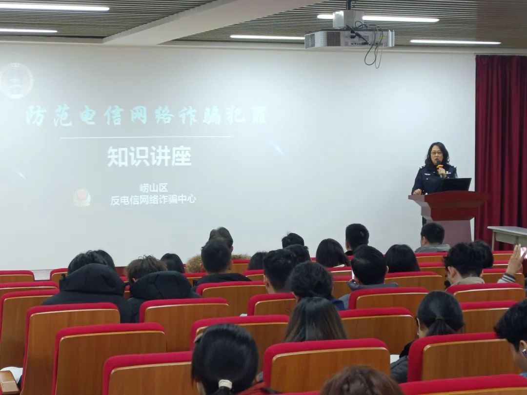 为切实增强学生的反电诈意识,有效预防和减少校园电信诈骗案件的发生,3月6日,BB贝博艾弗森官方网站特邀青岛市公安局崂山区反电信网络诈骗中心的警官,在图文中心三楼报告厅开展了一场生动且意义非凡的反电诈宣讲会。