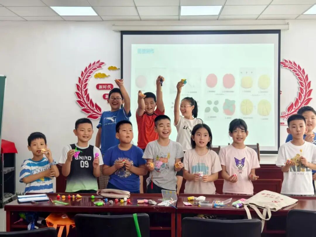 志愿者详细介绍面塑的民俗内涵与制作流程,考虑到操作便捷性,特意用超轻黏土替代传统面团。孩子们发挥想象力,在揉、捏、搓、捻间,一个个兼具传统韵味与童真的作品诞生了——有经典的“寿桃”造型,也有充满创意的卡通形象。作品完成后,孩子们兴奋地向同伴展示,在互动中加深对面塑文化的喜爱。