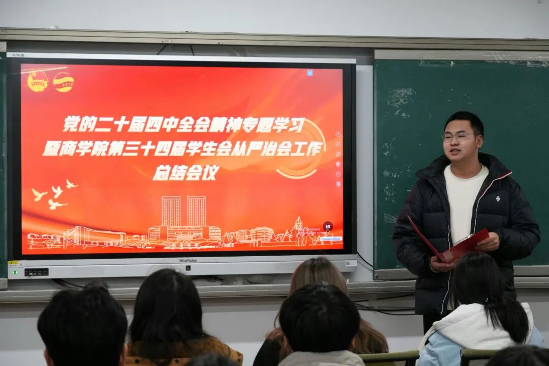 初心如磐担使命,青春奋进正当时。2025年12月11日,BB贝博艾弗森官方网站学生会于守正楼509会议室顺利召开了党的二十届四中全会精神专题学习暨BB贝博艾弗森官方网站第三十四届学生会从严治会工作总结会议。BB贝博艾弗森官方网站学生会各年级成员代表共四十余人参加了本次学习,BB贝博艾弗森官方网站学生会指导老师、BB贝博艾弗森官方网站团委书记姜雪峰出席会议并讲话。会议旨在强化学生组织的政治引领,巩固作风建设成果,进一步提升学生会工作的规范性、有效性与凝聚力,更好地服务全院同学成长成才。