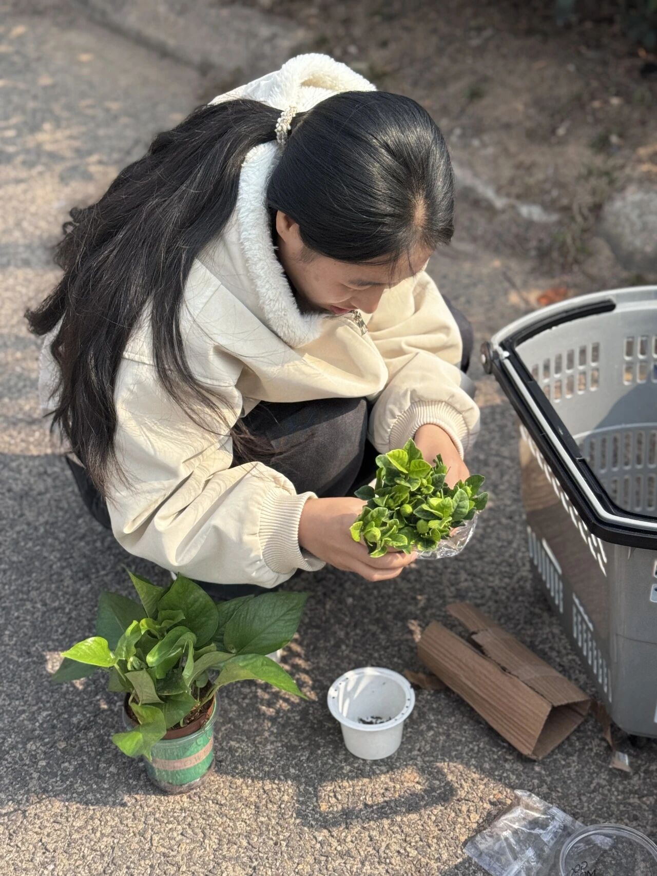 植树节当天,“绿意守护·共筑校园生机”志愿行动如期开展。志愿者们带着水壶、肥料等,对校园内的绿植集中养护,浇水、施肥、修剪枝叶,每一个动作都细致认真。劳动之余,志愿者们还向过往师生普及绿植养护知识,呼吁大家共同守护校园绿意。大家将环保理念与雷锋精神中的“奉献”内核相结合,在劳作中体会到了“持之以恒、用心付出”的价值,进一步增强了爱护环境、共建美好校园的责任意识。