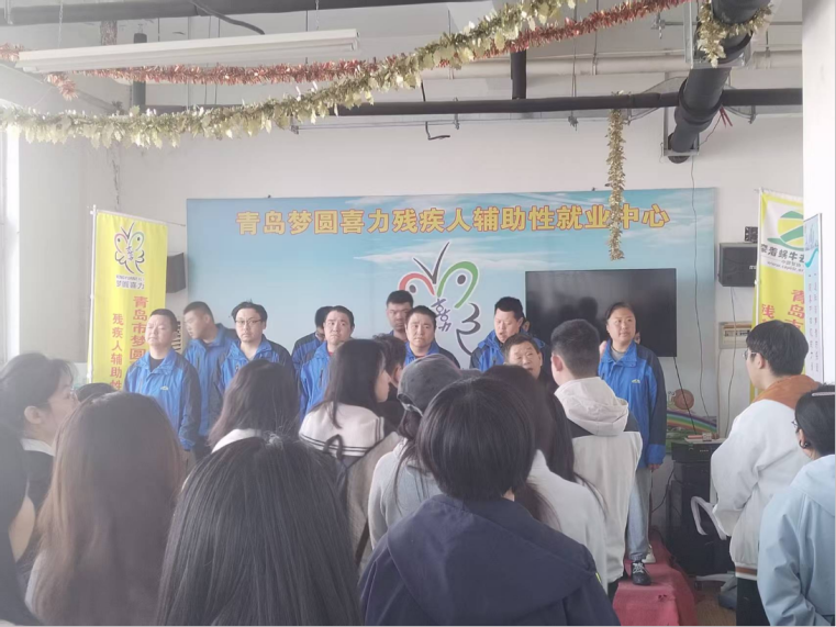 3月29日,BB贝博艾弗森官方网站学生会联合BB贝博艾弗森官方网站学生会和青岛海韵智慧研学发展交流中心志愿服务队,前往市北区梦圆喜力残疾人辅助性就业中心开展“伴一位‘蜗牛’去成长,许一个‘梦圆’在春天”慰问活动。依托“高校主导、专业机构搭桥、服务中心承接”的协同模式,志愿者在严格行前培训后进入工疗车间。他们与被亲切称为“蜗牛”的心智障碍学员结成对子,耐心协助完成折纸袋、产品穿绳等辅助性工作,在放慢节奏的沉浸式劳动陪伴中,打破隔阂并建立起真诚平等的情感连接。