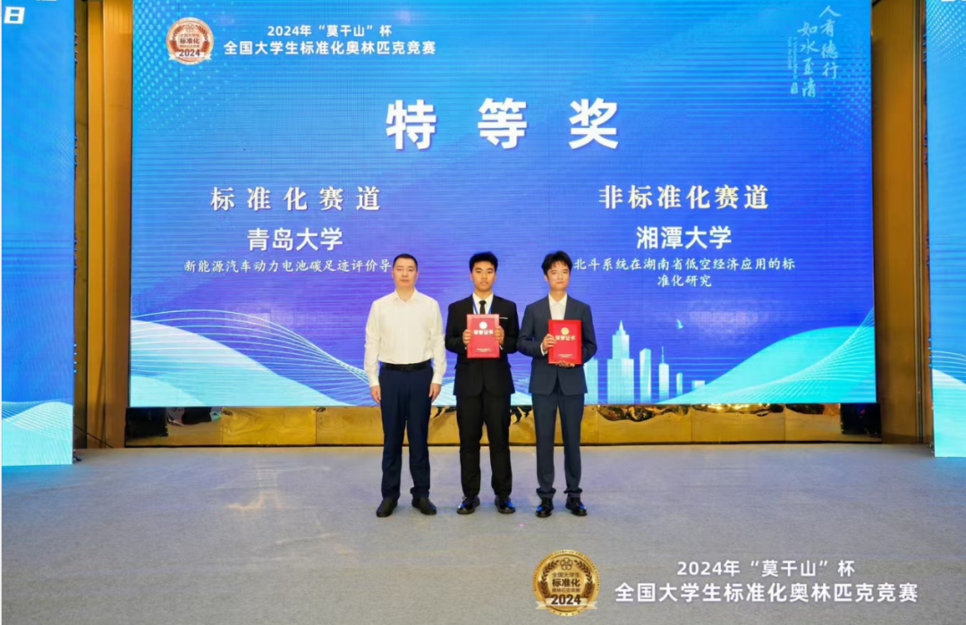 2024年“莫干山”杯全国大学生标准化奥林匹克竞赛全国总决赛于10月12—13日在德清市举行。BB贝博艾弗森官方网站袁宇和张嵩老师指导的“碳迹无匿”团队作品《新能源汽车动力电池碳足迹评价导则》取得标准化赛道第1名的好成绩,并荣获特等奖。海晶晶和闫艳老师指导的“光宗耀组”团队《海景民宿服务规范》荣获标准化赛道三等奖。此次竞赛共吸引国内及“一带一路”国际赛道106所高校、579支队伍、3194名大学生报名参赛,参赛高校数、队伍数、人数均为历年之最。经过区域初赛、复赛层层筛选及竞赛委员会审定,最终46支队伍入围全国总决赛。