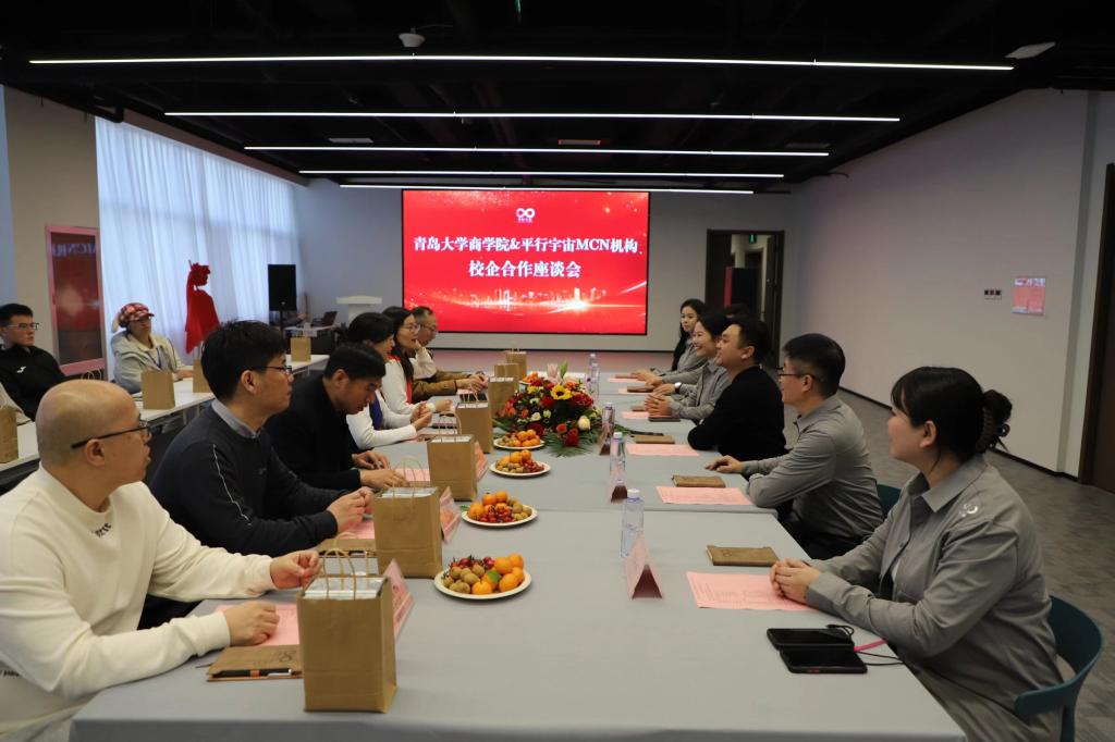 当天下午,BB贝博艾弗森官方网站师生一行走进青岛平行宇宙文化传播有限公司——全网领先的垂直美业MCN机构。公司极具科技感与活力的办公环境、专业的直播场景与企业文化展示,让师生直观感受到新媒体行业的创新脉搏。