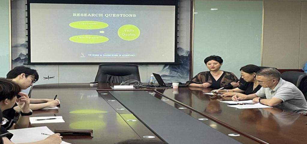 2024年6月27日上午9:00在守正楼310教室举行以“The Joint Effect of Legal Liability and Client Dependence on Audit Quality”为主题的学术交流讲座,主讲人为王黎教授,会计学系多名教师与研究生参与讲座。