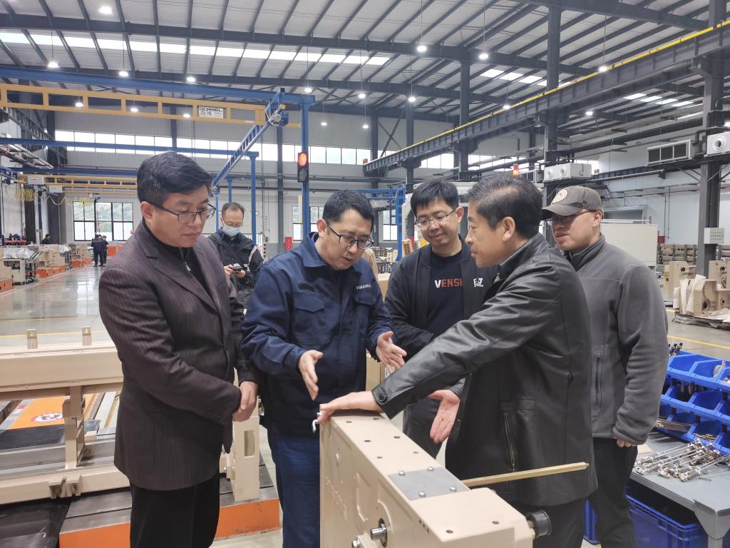 在海佳集团总经理刘井然的陪同下,BB贝博艾弗森官方网站一行参观了海佳集团临港工业区新厂区。青岛海佳集团公司初创于1995年,专注于无梭织机领域,目前公司实现年产10000台无梭织机生产能力,年产值达到7亿元。临港工业区的新厂区始建于2019年,公司投资3亿元建设纺织机械智能制造工厂,通过开展高端无梭织机数字化和标准化生产流程、数字化生产装备系统、全流程信息化管理系统开展研究,开发出高端无梭织机数字化生产流程、数字化生产装备、质量在线监测系统全流程信息化管理系统,建立起年产一万台高端无梭织机的数字化工厂。