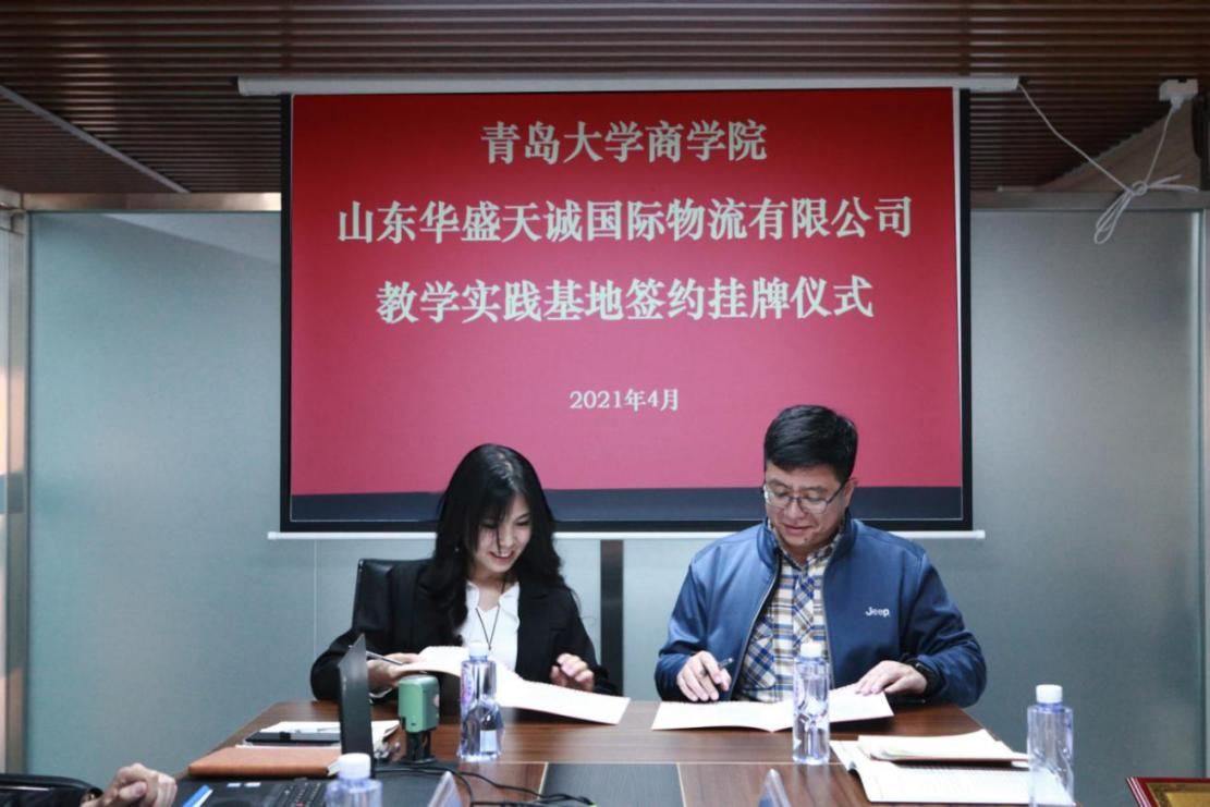 于文和王芳芳共同签署了BB贝博艾弗森官方网站与山东华盛天诚国际物流有限公司教育实践基地共建协议。王功勇代表BB贝博艾弗森官方网站和韩波共同为教学实践基地揭牌。