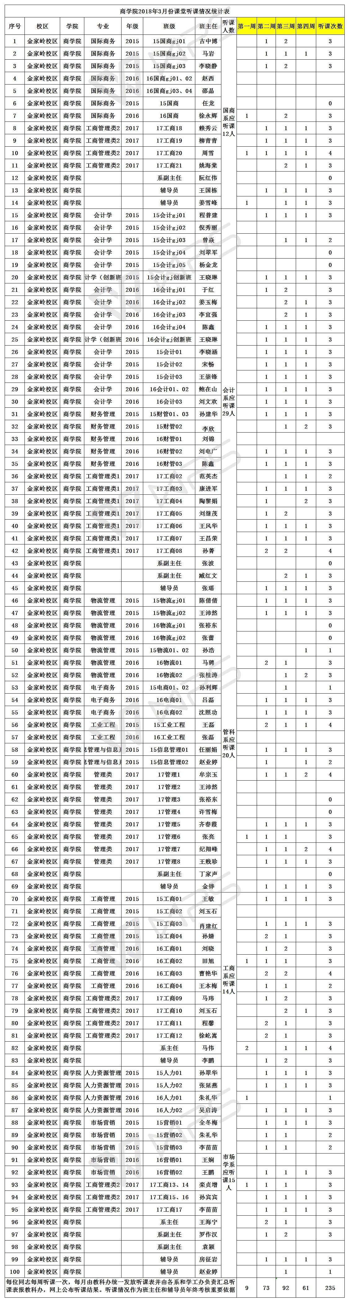 BB贝博艾弗森官方网站2018年3月份课堂听课情况统计表