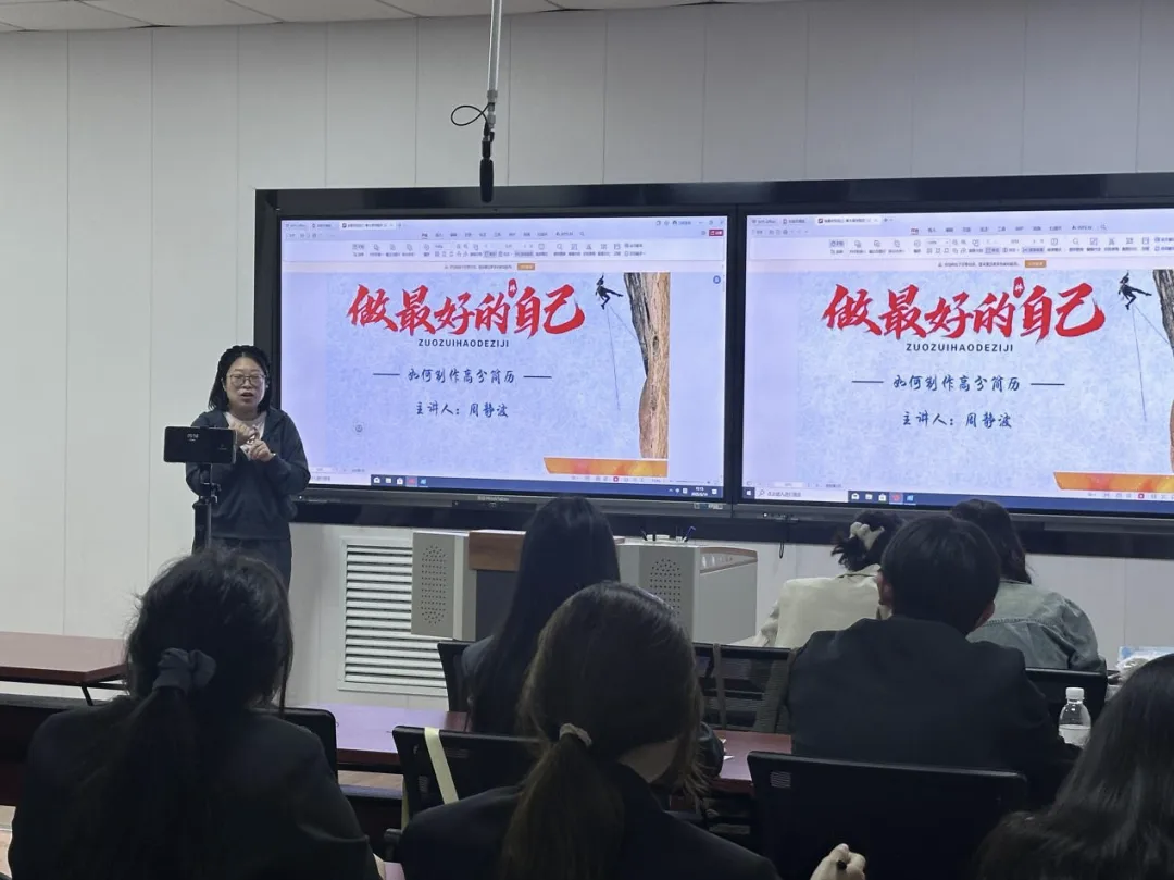 2025年5月15日,BB贝博艾弗森官方网站精进班邀请到资深HR导师周静波,她和25位学员一起在BB贝博艾弗森官方网站办公楼307教室开展了一场主题为《个人简历与求职信重塑》的专业技能课程,大家在两个小时里一同开启了一场深度学习之旅。