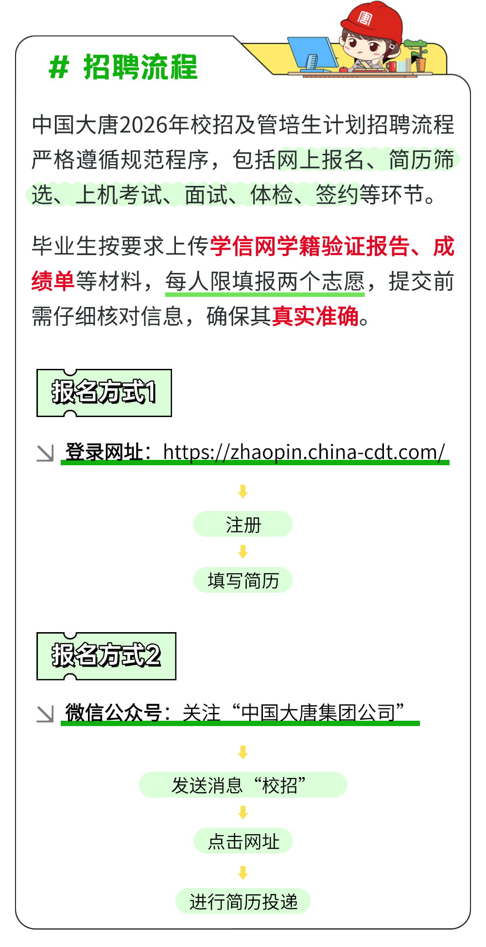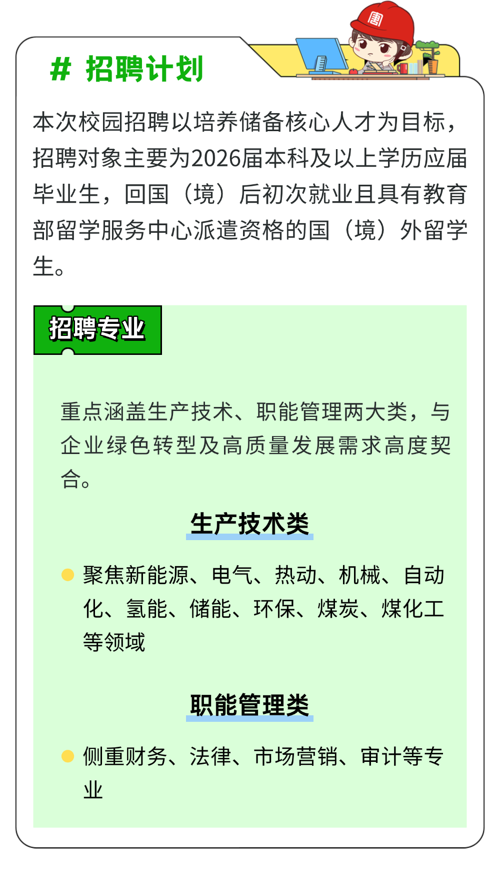 中国大唐相关部门负责人表示,中国大唐始终坚持“惟实惟新、共创共享”的价值观,高度重视人才培养与发展,将为录用毕业生提供完善的职业发展通道和有竞争力的保障体系。欢迎认同企业理念、怀揣能源报国理想的优秀学子加入,共同为构建新型能源体系、推进中国式现代化贡献力量。