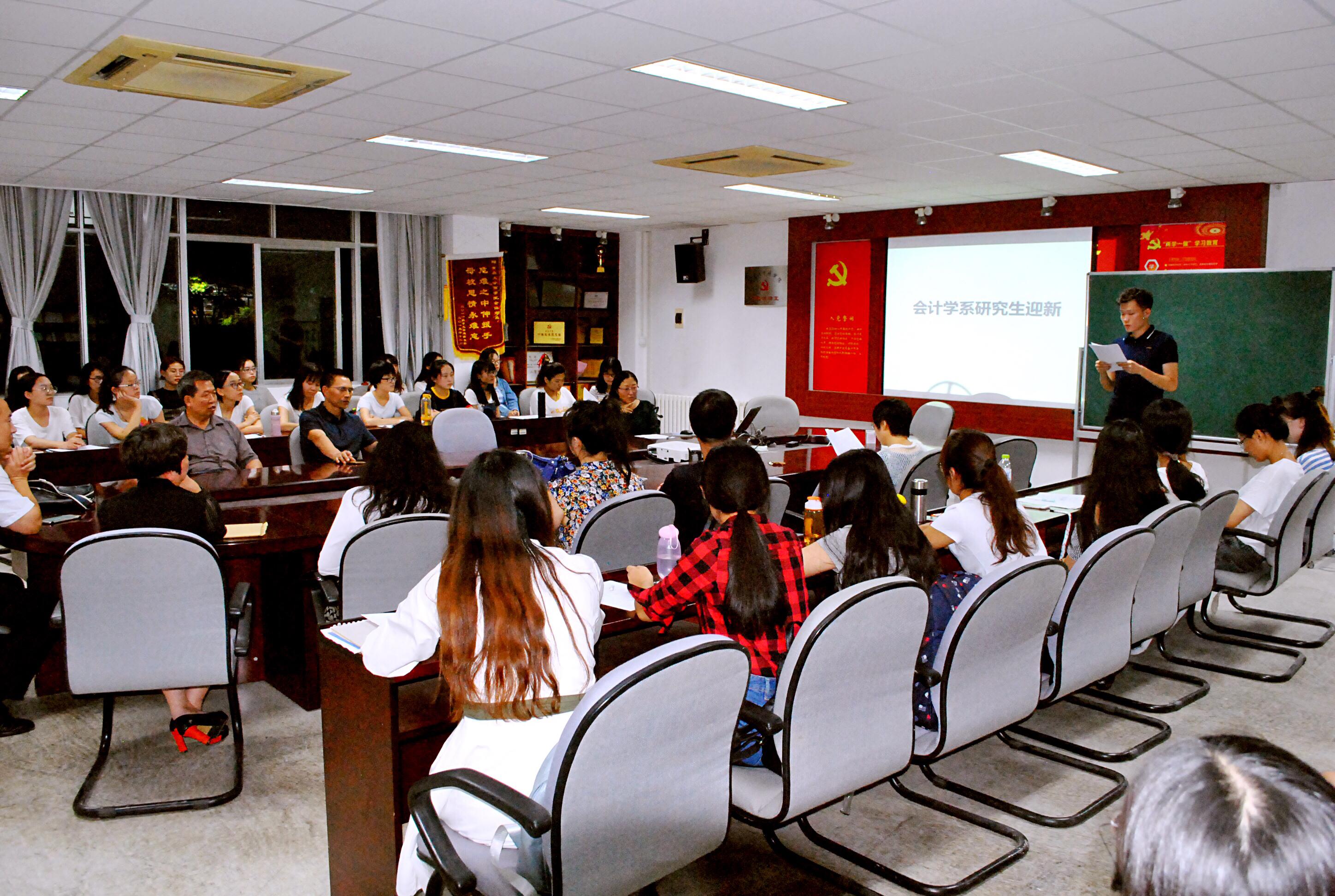 9月18日晚7点,我校会计学系于办公楼310成功举办新生入学教育和导师双选交流会,出席的老师有BB贝博艾弗森官方网站副院长周永梅老师,会计系主任范英杰老师,会计系张波老师,鲍在山老师等,到场的同学有会计专业研一全体同学。