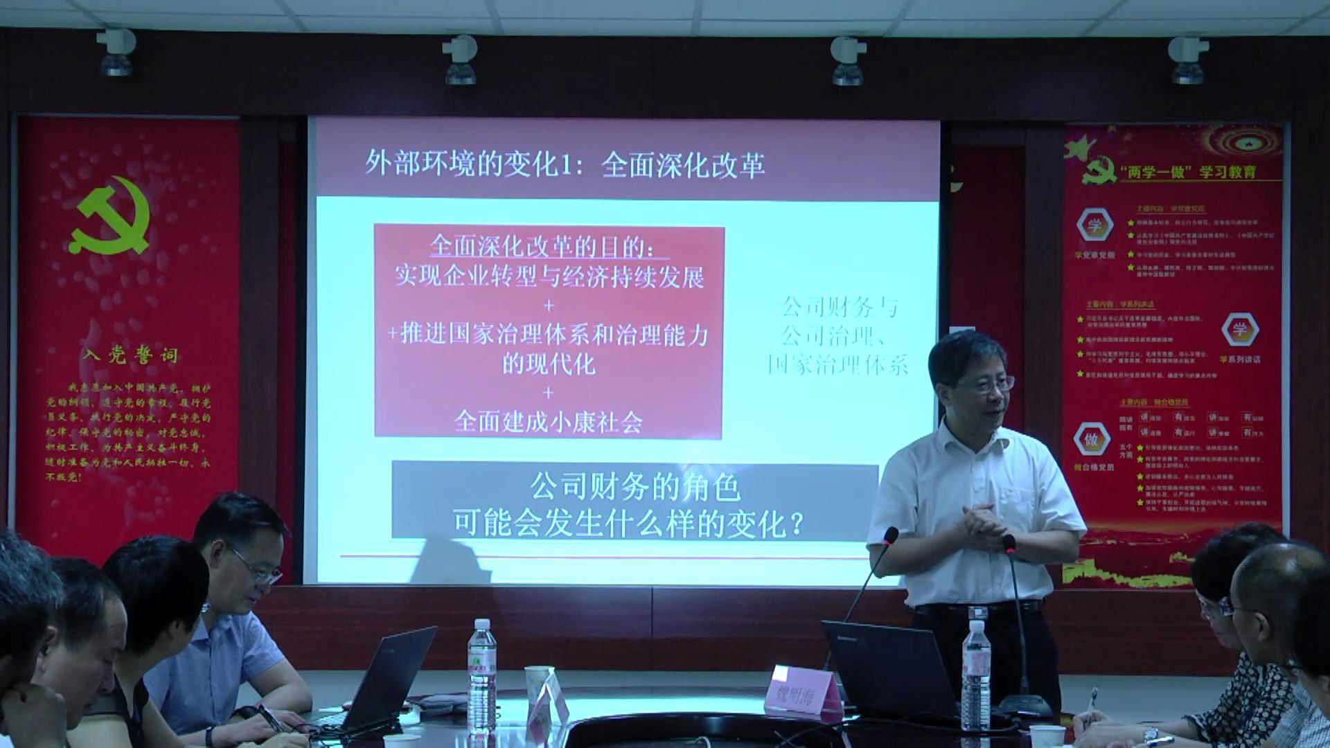 魏明海教授报告的主题是“思考公司财务战略问题的场景与逻辑”。在报告中,魏明海教授首先介绍了以全面深化改革、信息技术为代表的外部环境变化,并以此为切入点,引出公司财务角色变化的正在加快。魏明海教授从经营管理、公司治理、资本市场、公共管理等四个面对财务功能的拓展进行了剖析。