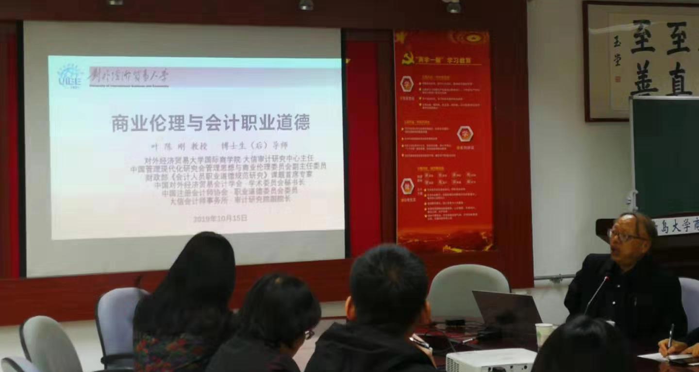 为了加强同学们对会计职业道德的认识,以“商业伦理与会计职业道德” 为主题的专题讲座于2019年10月16日下午2点,在金家岭校区办公楼303室如期顺利举行。