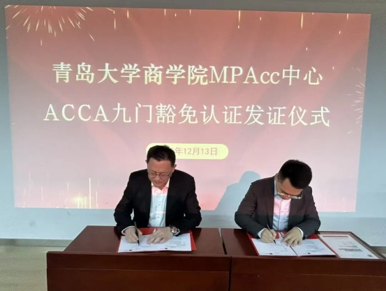 仪式核心环节中,BB贝博艾弗森官方网站副院长张磊与ACCA山东区负责人胡景皓共同签署合作协议。握手签约的瞬间、证书交接的时刻,不仅定格了双方深度合作的重要节点,更意味着青大MPAcc学子将享受国际顶级财会资格认证的专属福利,职业发展之路自此更添助力。